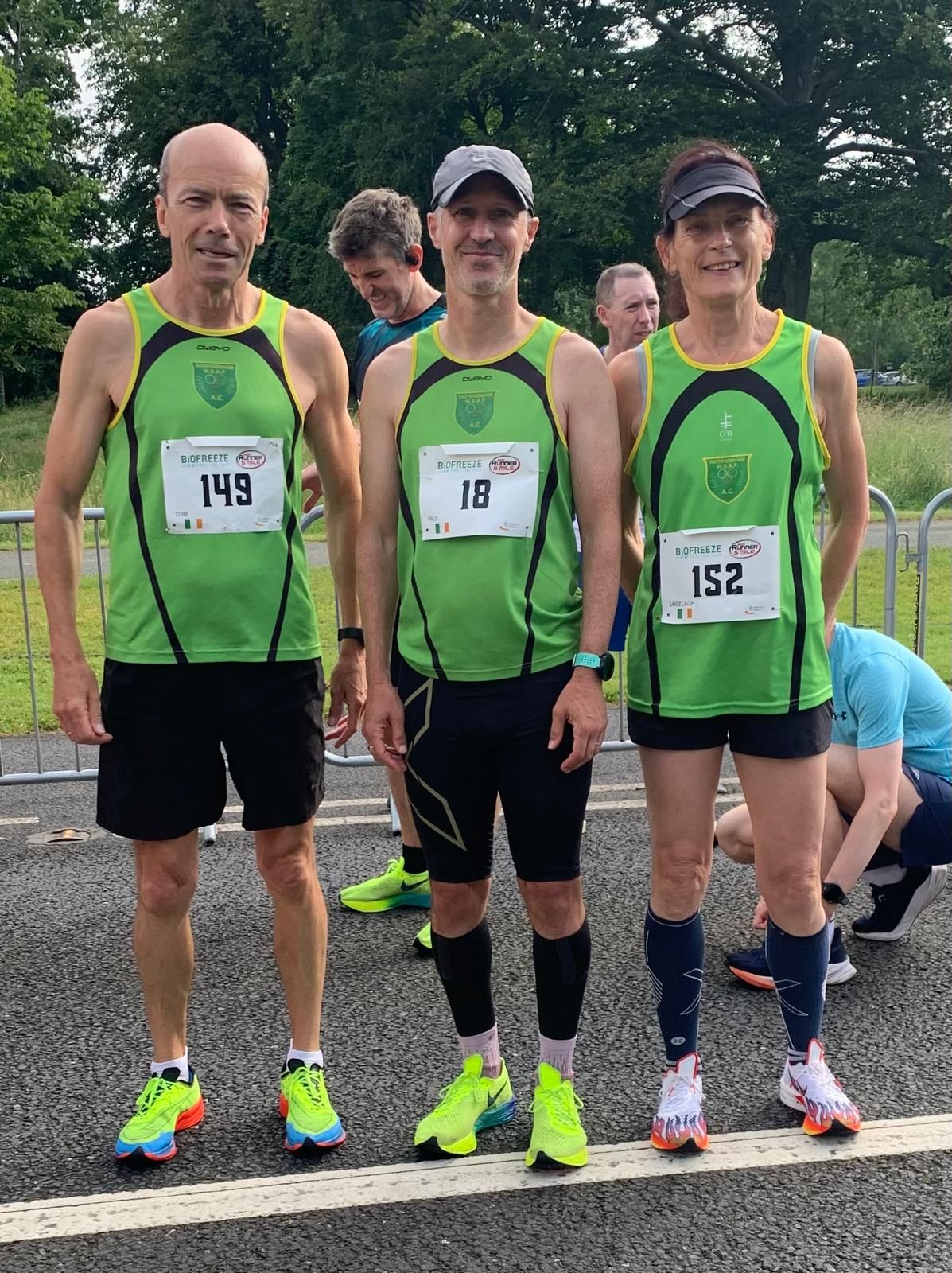 Today Sunday 29th June saw more runners take to start for national 5m road in Phoenix Park with David Power first thru in a remarkable fine PB time of 26.40. Also category wins for Tom Cuddy 31.33 and Shellagh Jones 36.19. Great runs were also had by Paul Fleming 28.58, Colm Murray 30.54, Tom Cuddy 31.33, Terry Clarke 39.30, and Richard Deasy 32.55.